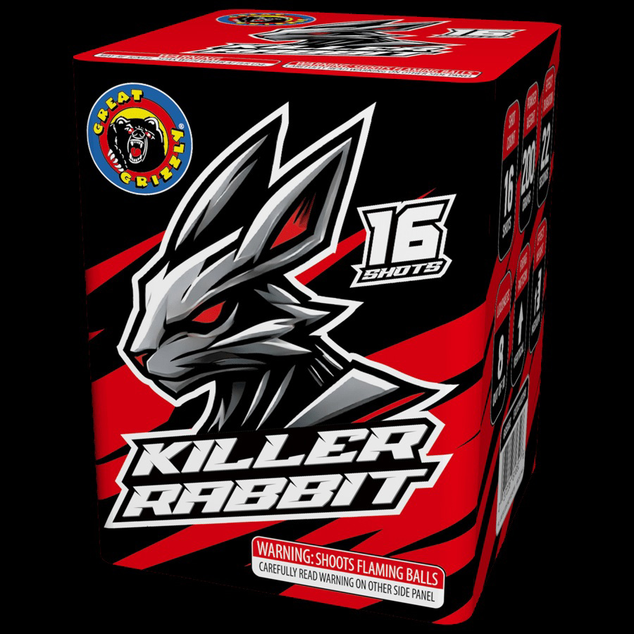 This little bunny foo foo is full of fury and teeth! 16 ground thumping shots of fluffy cotton balls pound the sky with giant bursts of white meteor showers with green, red, orange & purple stars.